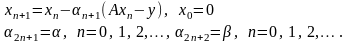 Как известно, погрешность метода простых итераций с постоянным или переменным шагом зависит от суммы итерационных шагов и притом так, что для сокращения числа итераций желательно, чтобы итерационные шаги были как можно большими. Однако на эти шаги накладываются ограничения сверху. Возникает идея попытаться ослабить эти ограничения. Это удаётся сделать, выбирая для шага два значения