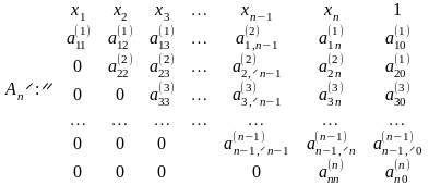 Таблиця коефіцієнтів при невідомих набирає трикутного вигляду. На головній діагоналі всі елементи