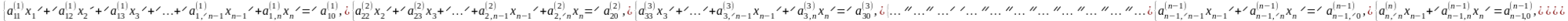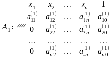 Далі перший рядок множимо послідовно на а21 і віднімаємо від другого рядка, множимо на а31 і віднімаємо від третього рядка і т.д. Позначивши