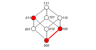 Отметив вершины, в которых булева функция принимает единичные значения, получим геометрическое представление булевой функции. Так функция