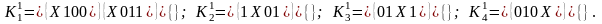 К 0 = {0011, 0100, 0101, 0111, 1001, 1011, 1100, 1101}.