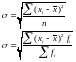 Квадратный корень из дисперсии носит название среднего квадратического отклонения от средней. Формулы его расчета следующие: