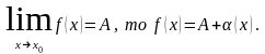 Теорема (обратная). Если функцию можно представить в виде суммы числа А и б.м.ф. (x), то число А является пределом функции , т.е если , то