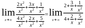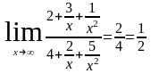 Теорема 4. Предел дроби равен пределу числителя, деленному на предел знаменателя, если предел знаменателя не равен нулю.