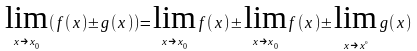 Теорема 1. Предел суммы (разности) двух функций равен сумме (разности) их пределов:
