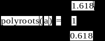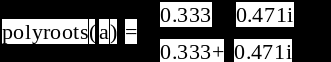 Для нахождения корней полиномов имеется встроенная функция polyroots(a). Аргументом функции является вектор коэффициентов полинома