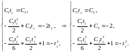 из (5) используем начальные и конечные условия и получаем систему уравнений для констант С1, С2, С3, С4,: