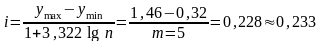 Для результатов признака необходимо определить величину интервала по формуле Стреджесса