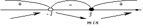 Критическая точка функции x =3. Точка x= –1 не входит в область определения функции.