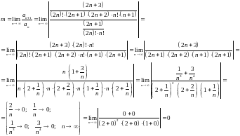 Определяем область сходимости этих рядов, пользуясь признаком Даламбера: