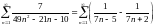 Найдём n – первые членов ряда, записывая дроби с одинаковыми знаменателями друг под другом: