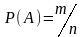 где: m – число исходов, благоприятствующих появлению события А, n – общее число равновозможных исходов испытания.