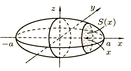 объема тела по площади параллельных сечений, получаем