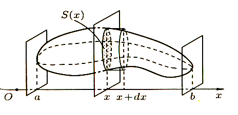 [а; b] также проведем плоскость, перпендикулярную оси Ох. Функция s = s(х) получит приращение Δs, изображенного на рисунке в виде «пояска».