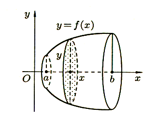 [а; b] проведем плоскость П, перпендикулярную оси Ох. Плоскость П пересекает поверхность вращения по окружности с радиусом у – f(х). Величина S поверхности части фигуры вращения, лежащей левее плоскости, является функцией от х, т.е. s = s(х) (s(а) = 0 и s(b) = S).