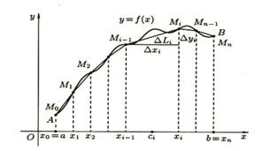 Под длиной дуги AB понимается предел, к которому стремиться длина ломаной линии, вписанной в эту дугу, когда число звеньев ломаной неограниченно возрастает, а длина наибольшего звена ее стремиться к нулю.