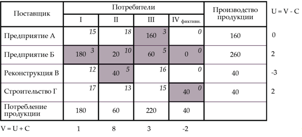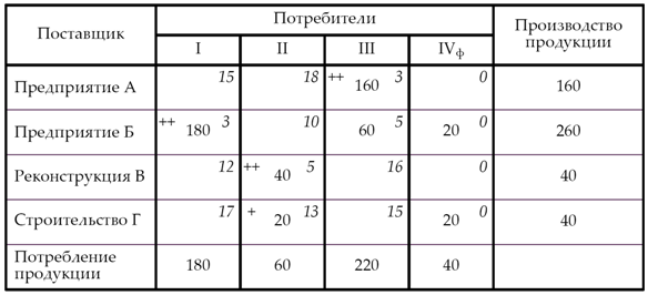 Поскольку в оптимальном плане прирост мощности 40 тыс. у. е. продукции за счет строительства отнесен на фиктивного потребителя, то строительство нового цеха или пристройку цеха к действующему следует считать нецелесообразным, и капитальные вложения необходимо направить на реконструкцию действующего предприятия.