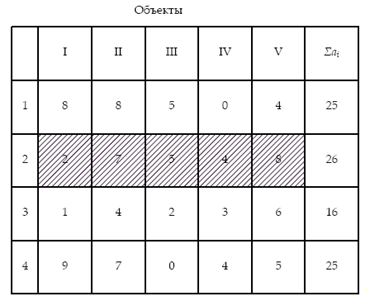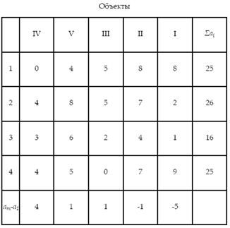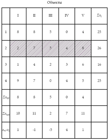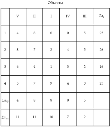 на первом месте располагается объект с наибольшим значением Σапос. Остальные объекты располагаются так, чтобы Σапр постепенно возрастало, а Σапос снижалась к концу матрицы;