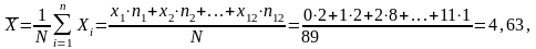 де xі – і-те значення варіанти, ni – частота цього значення, N – об’єм вибірки.