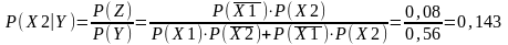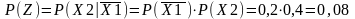 В силу незалежності подій Х1 та Х2, і враховуючи, що ймовірність події Z – це умовна ймовірність події Х2 при умові події