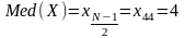 Медіана – це варіанта, яка ділить варіаційний ряд на дві частини, рівні за числом варіант. Оскільки число елементів вибірки непарне (N=89), то медіаною є варіанта, яка має номер