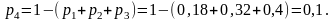 | Р | 0,18 | 0,32 | 0,4 | ? |