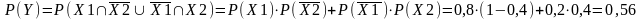 Ймовірність події Y дорівнює (згідно з теоремами множення і додавання):