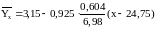 14) За відповідним рівнянням регресії середнє значення затрат електроенергії на 1 тн. металу тих заводів, у яких середньодобове вироблення металу складає 22,5 тис.т., складає: