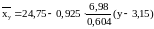 3. Обчислити для даного значення однієї змінної відповідне значення іншої, використавши для цього одне з одержаних рівнянь регресії (підхоже) та порівняти це значення з відповідним груповим середнім (це останнє завдання подано разом з кореляційною таблицею).