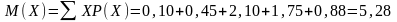 | Х*Р | 0,10 | 0,45 | 2,10 | 1,75 | 0,88 |