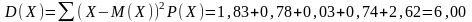| P (Х) * (Х - М (Х)) 2 | 1,83 | 0,78 | 0,03 | 0,74 | 2,62 |