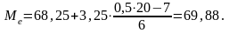 Кумулятивна частота Sme3 = 13, Sme2-1 = 7, fme = 6, хо = 68,25, h=3,25.