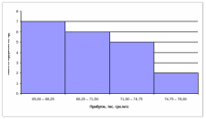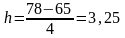 | 65,00 - 68,25 | 68,25 - 71,50 | 71,50 - 74,75 | 74,75 - 78,00 | Сума | |