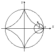 . Тогда точка меньшей окружности, которая в начальный момент времени была точкой соприкосновения с большей, в процессе движения опишет астроиду (рис. 3.4), параметрическое уравнение которой имеет вид: