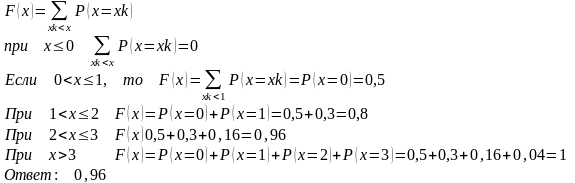 Пассажир может ждать летной погоды трое суток, после чего едет поездом. По прогнозам вероятность летной погоды в первые сутки 0,5, во вторые — 0,6, в третьи — 0,8, Х — число полных суток до отъезда пассажира.