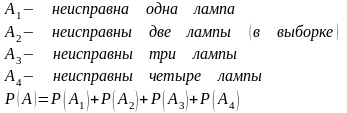 Событие А — хотя бы одна лампа неисправна.