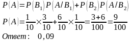 Для события А вычислим вероятность наступления при условии наступления события