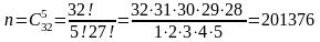 Из колоды в 32 карты наугад вынимают 5. Найти вероятность того, что среди них окажется ровно один туз.