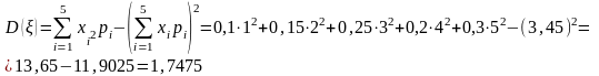 Найдем D(ξ) случайной величины ξ из примера 5: