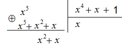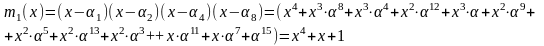 Теперь, раскрыв скобки и приведя подобные, получим полином m3(x) = x4 + x3+ x2 + x1+1.