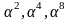Теперь заменим a на элементы поля, после раскрытия скобок и приведения подобных получим минимальный полином для элементов со степенями 1, 2, 4, 8.