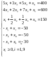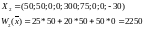 | X3=0 X7=0 X8=0 | X1=50 X2=50 X4=0 X5=300 X6=75 X9=-30 |