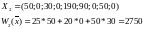 | X4=0 X8=0 X9=0 | X1=20 X2=50 X3=30 X5=210 X6=95 X7=30 |