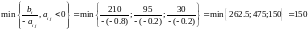 Bi=min{bi<0}=min{-50;-50;-30}= -50