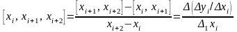 Сформулюємо аналітичний критерій для квадратичної залежності. Для цього введемо поділені різниці першого і другого порядку