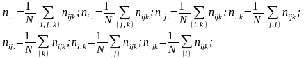 де nijk - частота комірки (і, j, k), яка спостерігається N – число комірок таблиці спряженості.