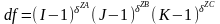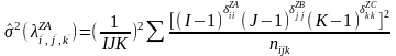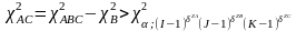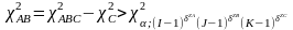 де I, J, K – число рівнів ознак A, B, C відповідно, δZA = 1, якщо А входить в Z, і а якщо ні, то δZA = 0 і т. п.