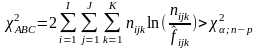 H0: λijkABC=0, i=1,..,I, j=1,..,J, k=1,..,K – гіпотеза про незалежність ознак A, B і C