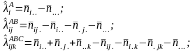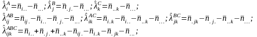 λijkABC – ефект взаємодії i-ого рівня ознаки А, j -ого рівня ознаки B та k-ого рівня ознаки C;
