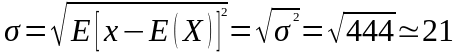 σ2=(230-279)2·0,075+ (254-279)2·0,125+ (262-279)2·0,25+ (274- -279)2·0,075+ (281-279)2·0,175+ (282-279)2·0,25+ (285-279)2·0,025+ +(302-279)2·0,1+ (307-279)2·0,1+ (308-279)2·0,05=444